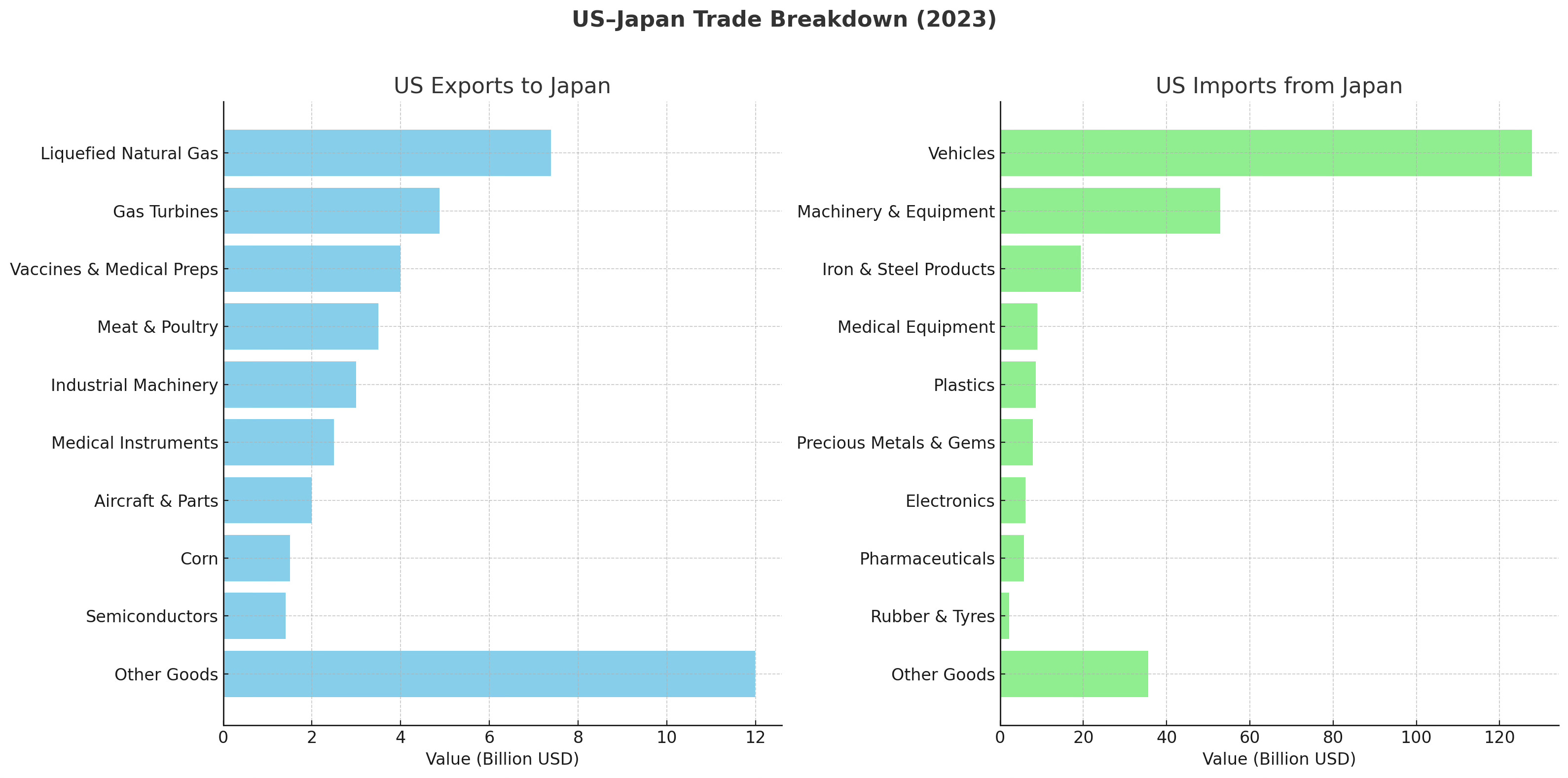 Auto exports remain the elephant in the room. Japan exported over 1.6 million vehicles to the United States in 2023, while importing fewer than 20,000 in return. The imbalance is masked by Japanese automakers’ U.S. production facilities, but their headquarters — and profits — remain in Tokyo. What the U.S. sees as partnership, Japan has long treated as market acquisition.