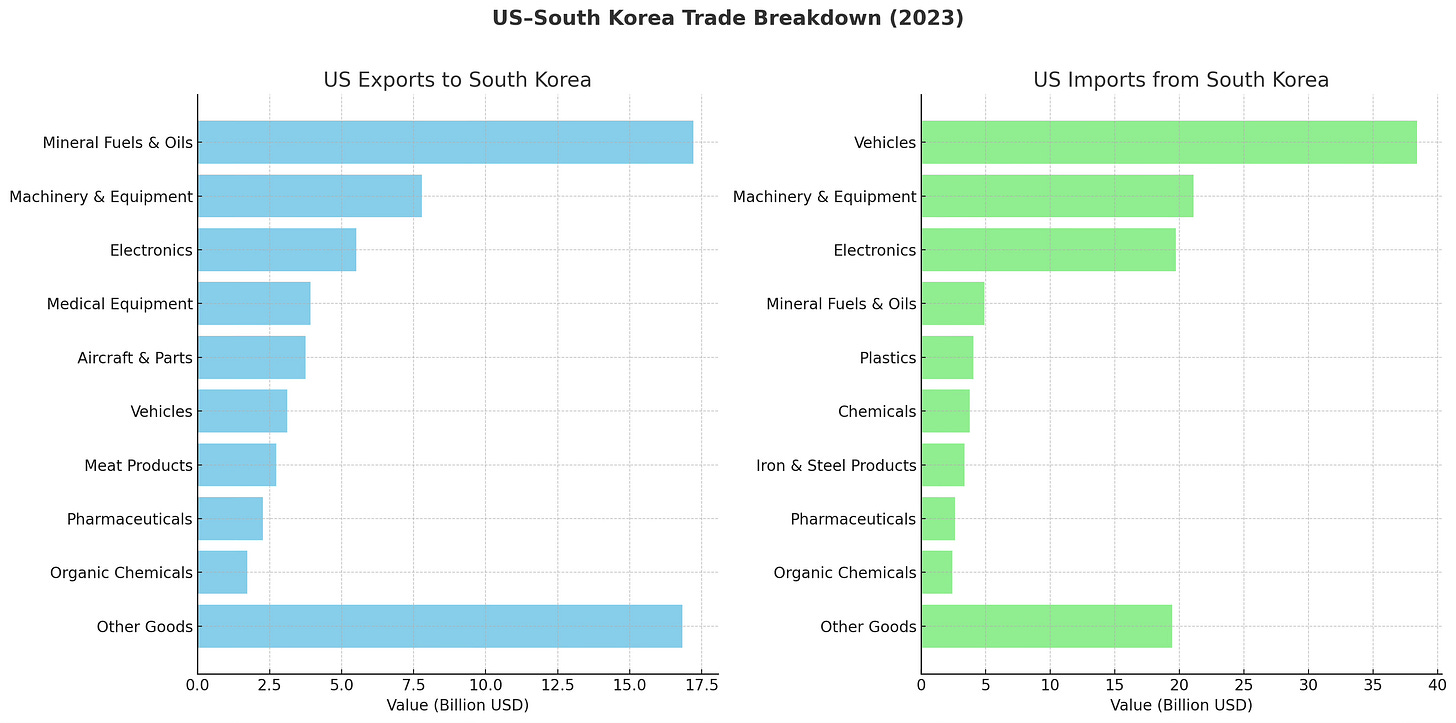 While the average tariff rate on imports from the United States stood at just 0.79% as of 2024—and is expected to fall even further this year, with no duties on manufactured goods—the trade balance tells another story. The U.S. ran a $28 billion trade deficit with South Korea in 2023. Now, Washington is floating the possibility of a 25% tariff on Korean goods to restore some measure of balance. That threat has yet to provoke meaningful reform.