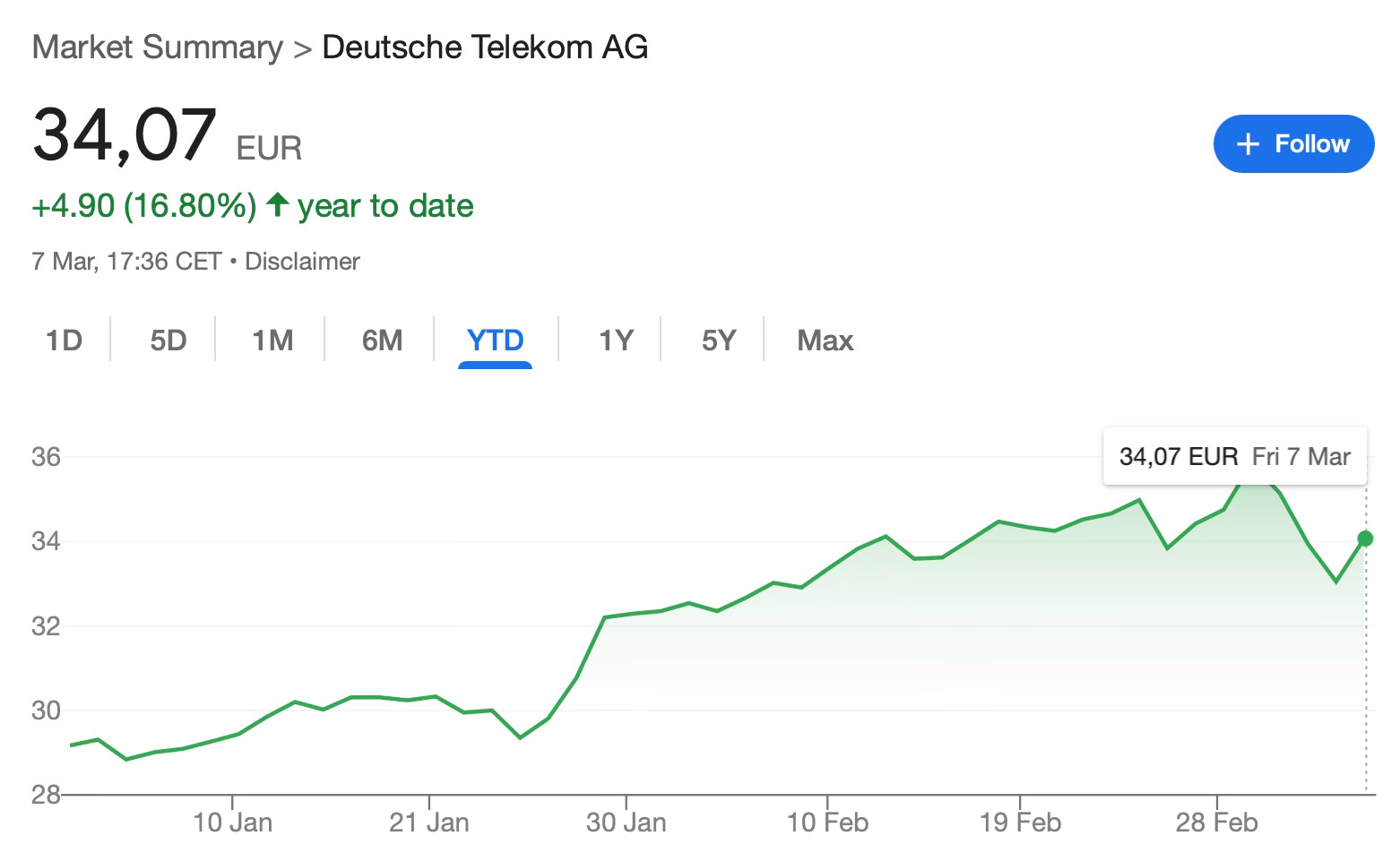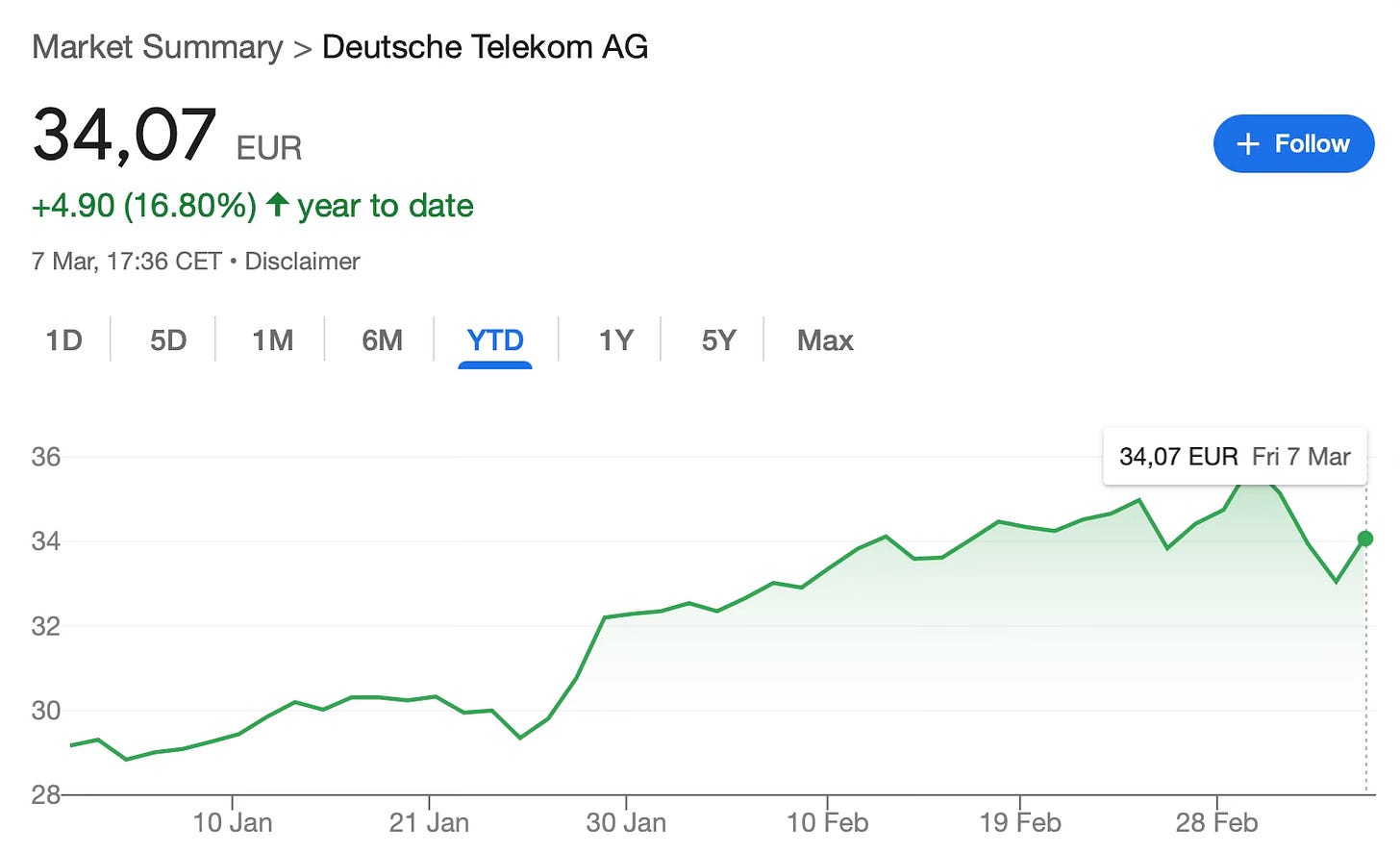 💡 Some analysts note short-term valuation concerns, but the consensus remains overwhelmingly positive, with multiple “Buy” ratings and price targets reaching up to €43. J.P. Morgan's Akhil Dattani leads with a €43 target, implying 26% upside, while Goldman Sachs’ Andrew Lee follows closely at €42. Citi's Carl Murdock Smith places the stock at €39. The new German government is set to invest hundreds of billions in infrastructure, making Deutsche Telekom one of the main beneficiaries.