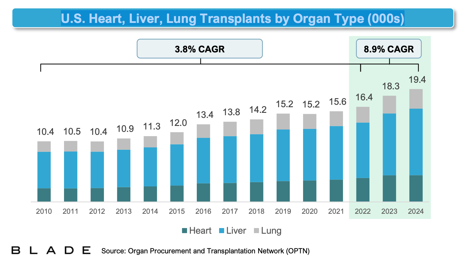 Blade operates across three segments: transporting human organs for transplant, short-distance flights of 10–100 miles, and jet charters. So far, the dead generate more revenue than the living—but even that line of business is stagnating.