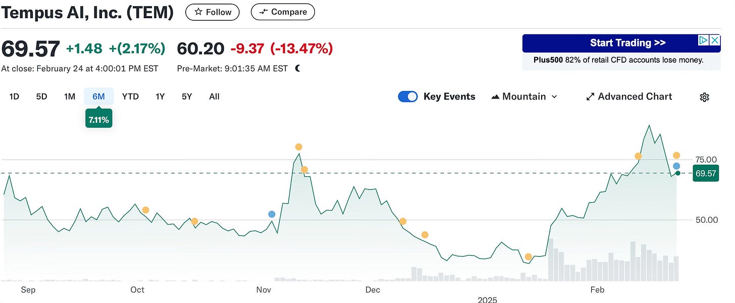 Tempus' stock had surged 106% YTD, but now it’s facing a 13% drop post-earnings. The stock grew too quickly, and the pullback highlights the risks of an overheated market. Can the company continue to grow amidst rising macroeconomic pressures?