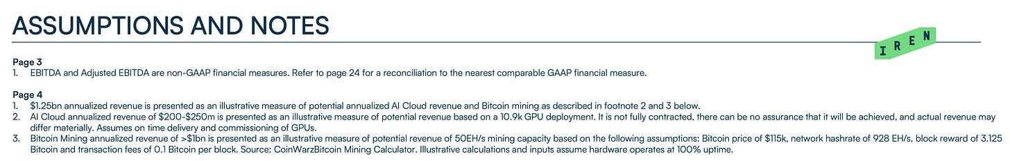 But investors shouldn’t forget two things. First, bitcoin mining is still >$1B in annualized revenue — 96% of the current business. That cash flow is what funds the pivot. Second, as the company itself discloses in its filings, all projections are heavily dependent on (a) utilization of new GPU clusters, and (b) the price of bitcoin. Both factors are volatile.