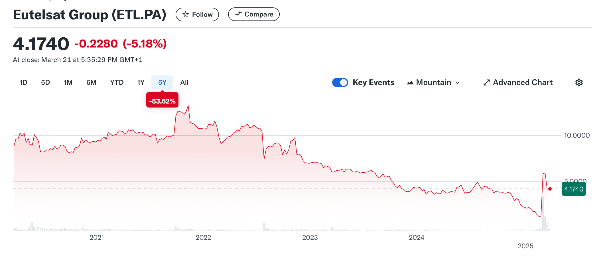 Massive EU defense and digital spending could still transform Eutelsat into a global leader.