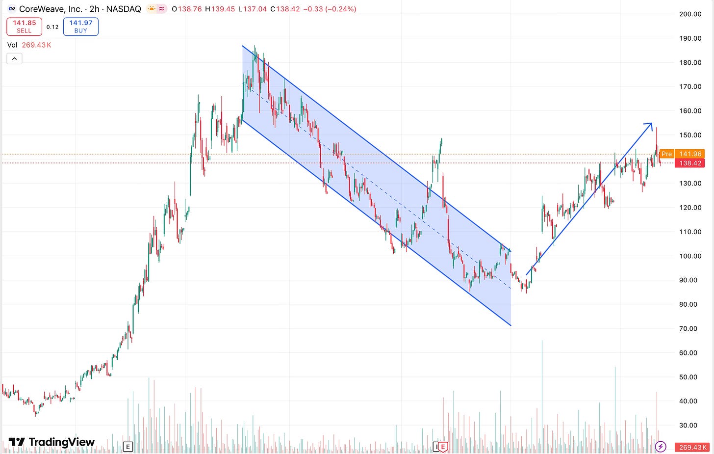 If you don’t have high conviction in a name, limit your exposure to 1–2% of your portfolio. That way, even a total loss won’t break you psychologically. You can always add later. Short-term options only make sense if there’s a strong catalyst — a major contract, a data imbalance, or a market mismatch. After the first CRWV earnings surge, for example, its peer NBIS traded under $40 for a while — it was obvious the market would soon rotate into similar plays.