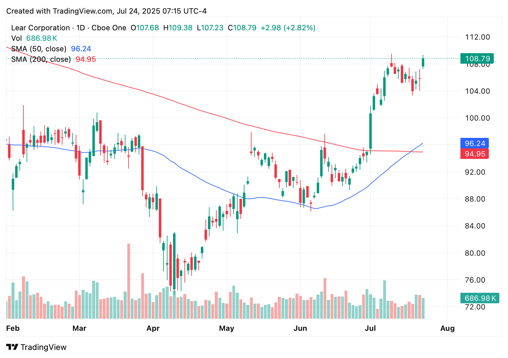 With earnings due tomorrow, Bank of America sees 25% upside, holding firm on a $135 target vs. today’s price of ~$108. That wouldn’t be surprising — Lear’s fundamentals are strong, and the valuation is hard to ignore.