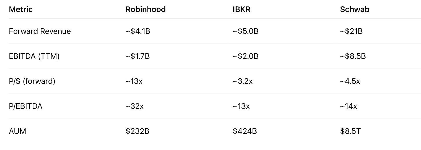Robinhood vs. IBKR & Schwab: The Valuation Premium