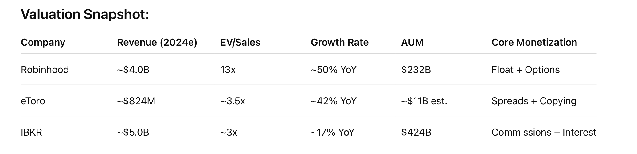 Robinhood vs. eToro vs. IBKR – What the Valuation Actually Means