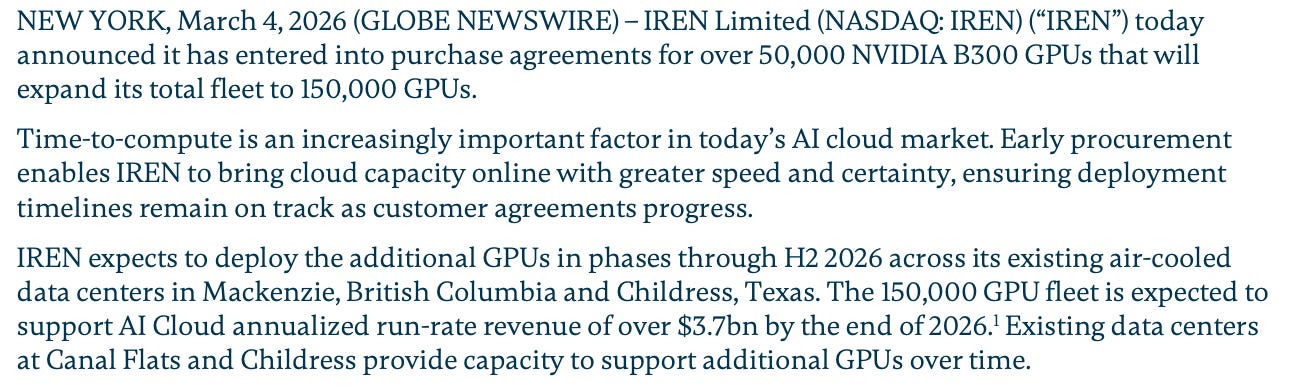 Taken together, this suggests that IREN may be building two distinct layers of infrastructure.
